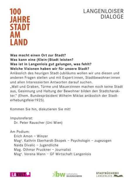 Eine Veranstaltung in Kooperation mit der Stadtbücherei Langenlois